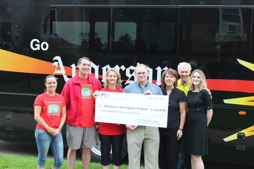 The AKT program was established to support the educational needs of students in homeless situations in Erie County. The AKT program is multifaceted and includes a mentoring program, Kid Konnection. The Kid Konnection program pairs an attorney with a student from a local shelter to participate in seven organized activities spread over several months. Each year, the students look forward to the "Big Trip" to a nearby city (Pittsburgh, Cleveland, Buffalo, etc.). This year's trip took place this past Friday, June 14, 2013. This year, members from the Law Day Run Committee were there to send them off, but not until they presented the AKT committee with a check for $13,650! What a great way to start the trip!