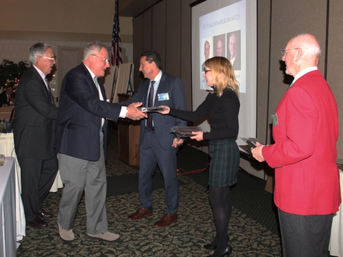 Pictured, from left to right, are Judges Michael Dunlavey, who retired in 2012, Ernest DiSantis, who retired in January, and Judge Shad Connelly, who is retiring at the end of 2015. Attorneys honored at the event included Adam Barnett, who received a PBA Pro Bono Award, Eric Purchase, recipient of the ECBA President’s Award, and Frank L. Kroto, James D. McDonald, Jr., and Norman H. Stark, who all were recognized for 50 years as attorneys. The evening ended with comments from outgoing ECBA President Rich Lanzillo, followed by a brief presentation from President Elect, Melissa Shirey.
