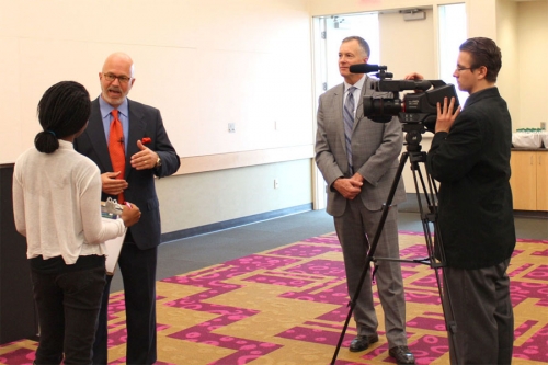 Smerconish made time for local high school and college students from 14 schools during a lecture and Q&A preceding the luncheon. The Erie County Bar Association also honored local leaders within and outside of the legal profession. Attorney Gary V. Skiba received the Pro Bono Award; the Honorable Thomas P. Agresti was named Chancellor of the Bar after a brief presentation that noted milestones in both his personal and professional life; and City Councilwoman and founder of Mothers Against Teen Violence, Sonya Arrington, was honored as the 2016 Liberty Bell Award recipient. The Liberty Bell Award recognizes a non-legal professional and Erie resident for community service that has "strengthened the American system of freedom under law".